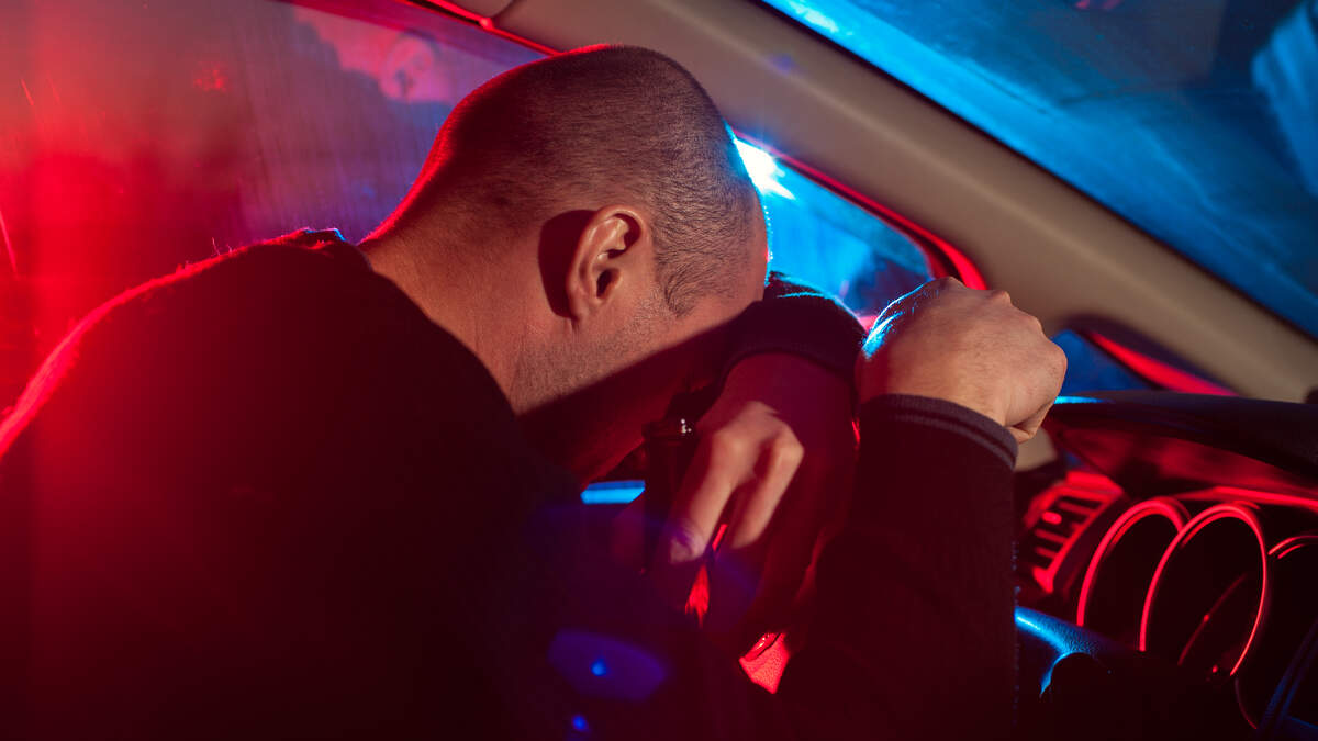Drunk Man covering his face from police car light