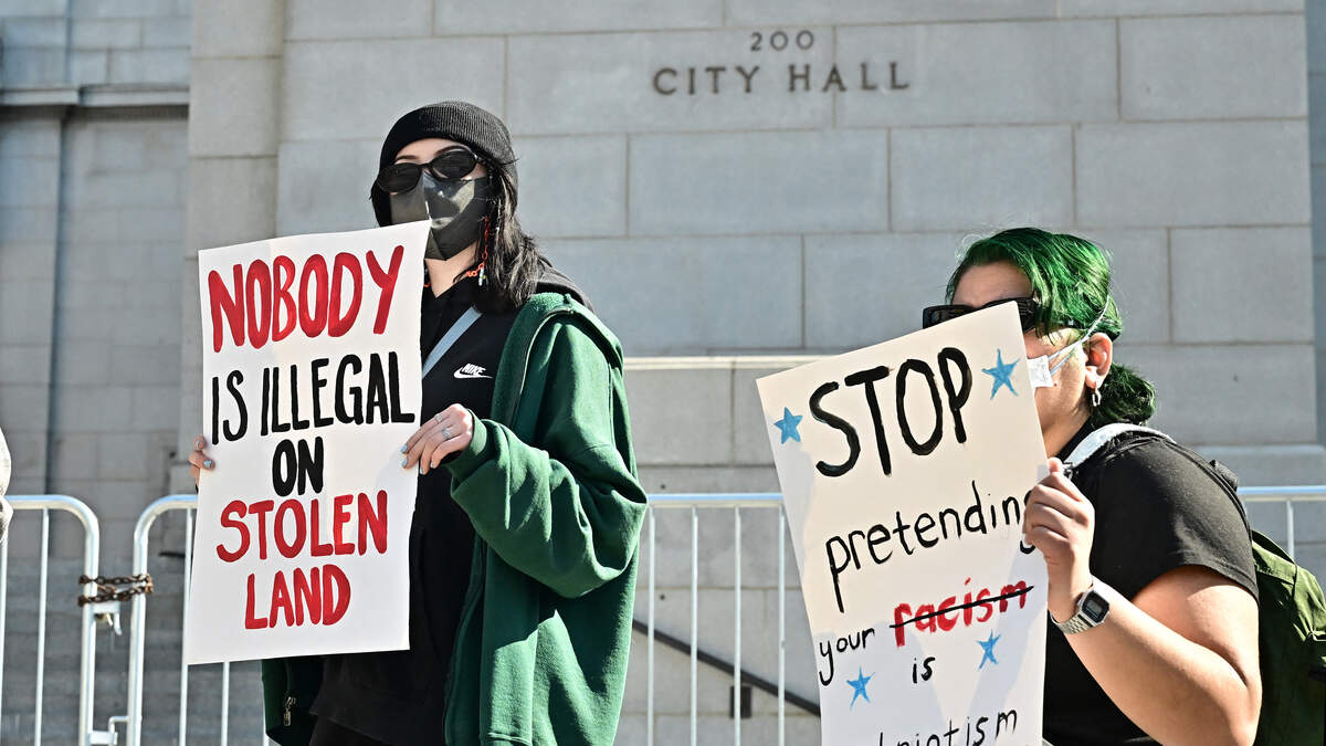 Around 11 a.m. Monday, they began marching along First and Spring streets. The group eventually made its way to the area near Crypto.com Arena, where they gathered at an intersection, waving flags and chanting. The group then made its way back north, joined by hundreds more participants and other people in vehicles who joined in the procession through downtown.