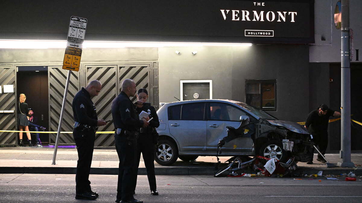 The crash was reported just before 2 a.m. Saturday in the 4600 block of West Santa Monica Boulevard near Vermont Avenue, according to Los Angeles Fire Department spokeswoman Lyndsey Lantz. The crowd was standing outside a music venue named The Vermont Hollywood, where a show was taking place, according to multiple media reports.